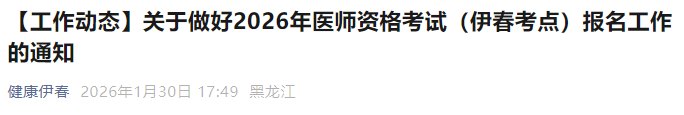黑龍江伊春2026年醫(yī)師資格考試報(bào)名|審核|繳費(fèi)|考試安排已公布!請(qǐng)相關(guān)考生及時(shí)查看,按時(shí)完成報(bào)名審核!
