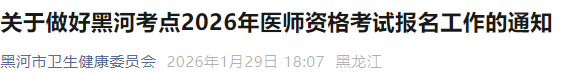 黑龍江黑河2026年醫(yī)師資格考試報名&審核&考試安排及要求已公布!請相關(guān)考生及時查看,按時完成報名審核!