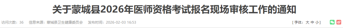 安徽亳州蒙城縣2026年醫(yī)師資格考試報(bào)名&現(xiàn)場(chǎng)審核安排