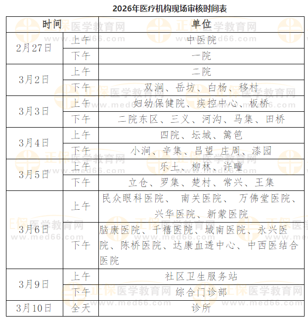 附件:各醫(yī)療機(jī)構(gòu)現(xiàn)場(chǎng)審核時(shí)間