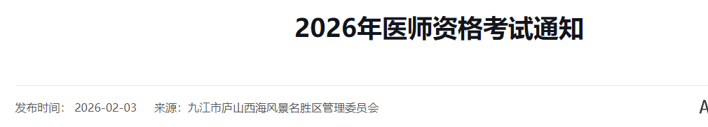 江西九江2026年醫(yī)師資格考試報(bào)名&審核&繳費(fèi)&考試安排已公布!請(qǐng)相關(guān)考生及時(shí)查看,按時(shí)完成報(bào)名審核!