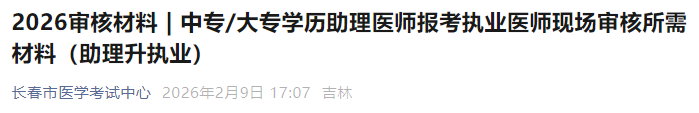 吉林長春考點(diǎn)官方發(fā)布2026年醫(yī)師資格考試中專/大專學(xué)歷助理考執(zhí)業(yè)現(xiàn)場審核所需材料!請相關(guān)考生及時查看,做好報名審核準(zhǔn)備!