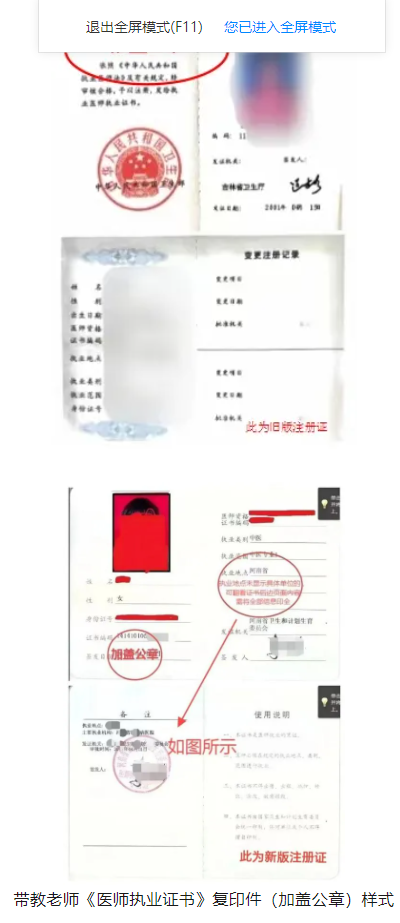 ●帶教老師注冊單位和考生實踐機(jī)構(gòu)必須是同一個。帶教老師多點執(zhí)業(yè)的,執(zhí)業(yè)證書能顯示多點執(zhí)業(yè)地點的,復(fù)印完整并加蓋單位公章;如執(zhí)業(yè)證書不能顯示多點執(zhí)業(yè)地點,需要提供衛(wèi)生行政部門開具的“醫(yī)師執(zhí)業(yè)注冊聯(lián)網(wǎng)管理系統(tǒng)截圖”,并加蓋衛(wèi)生行政部門公章。