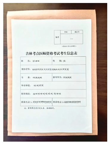 上述材料請整理后裝入自備的質(zhì)量好、無破損的檔案袋內(nèi),下載、打印《吉林考點醫(yī)師資格考試考生信息表》,填寫完整并粘貼在檔案袋正面。