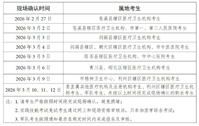 四川廣元2026年醫(yī)師資格考試報名|審核|繳費|考試安排已公布!請相關(guān)考生及時查看,做好報名審核準(zhǔn)備!