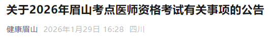 根據(jù)《國家衛(wèi)生健康委員會醫(yī)師資格考試委員會公告》(2026年第1號)和《四川省醫(yī)師資格考試領(lǐng)導小組公告》(2026年第1號)有關(guān)要求,現(xiàn)結(jié)合我市實際將2026年眉山考點醫(yī)師資格考試有關(guān)事項公告如下。