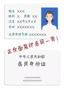 2.本人有效身份證原件(審核后當(dāng)時(shí)返還),復(fù)印件1份(正反面復(fù)印在A4紙同一頁(yè)面)。如身份證原件丟失,則需提供臨時(shí)身份證(需派出所開具的卡片樣式的)。