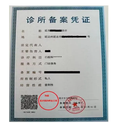 診所備案憑證(加蓋公章)樣式