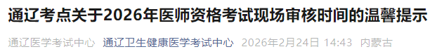 有變更!內(nèi)蒙古通遼2026年醫(yī)師資格考試現(xiàn)場審核3月6日截止!請相關(guān)考生及時查看,做好審核準備!