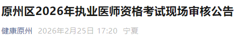 - · 寧夏固原原州區(qū)2026年醫(yī)師資格考試現(xiàn)場(chǎng)審核時(shí)間及要求