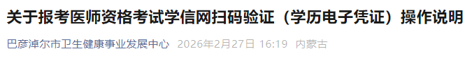 內(nèi)蒙古巴彥淖爾2026年醫(yī)師資格考試學(xué)信網(wǎng)驗(yàn)證開(kāi)始!