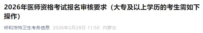 內(nèi)蒙古呼和浩特2026年醫(yī)師資格考生(大專及以上)速去學(xué)信網(wǎng)驗(yàn)證!