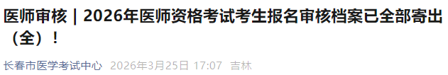 官方速報:吉林長春2026年醫(yī)師資格考試考區(qū)復(fù)審全部結(jié)束,蓋章即為通過!請相關(guān)考生及時查看考點官方通知,注意查收檔案!