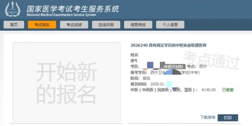 考生注意:青海省2026年醫(yī)師資格實踐技能繳費已開始!請相關(guān)考生及時登錄國家醫(yī)學(xué)考試網(wǎng)查詢考生服務(wù)系統(tǒng)報名狀態(tài),按時完成技能繳費!