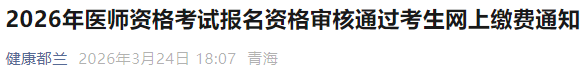 - · 考生注意:青海省2026年醫(yī)師資格實踐技能繳費已開始!
