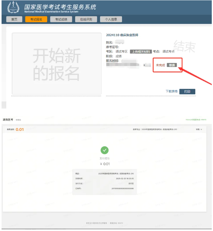 湖南考區(qū)2026年度醫(yī)師資格考試實(shí)踐技能考試網(wǎng)上繳費(fèi)起止時(shí)間為3月31日12時(shí)至4月9日24時(shí),請(qǐng)通過(guò)2026年度資格審核的考生,仔細(xì)閱讀下述繳費(fèi)流程,并在規(guī)定的時(shí)間內(nèi)按照流程繳納考試費(fèi)用。未按時(shí)繳費(fèi)者,視為放棄醫(yī)師資格考試實(shí)踐技能考試資格;繳費(fèi)后因自身原因不能參考,考試費(fèi)用不予退付。