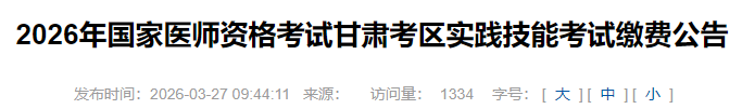 甘肅安定2026年醫(yī)師資格實(shí)踐技能繳費(fèi)入口4月3日開(kāi)通!