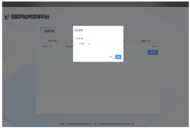 4.進(jìn)入支付頁(yè)面,確認(rèn)項(xiàng)目、金額等信息無(wú)誤后,點(diǎn)擊確認(rèn)繳費(fèi)按鈕,并輸入報(bào)考人手機(jī)號(hào),如圖2、圖3所示。