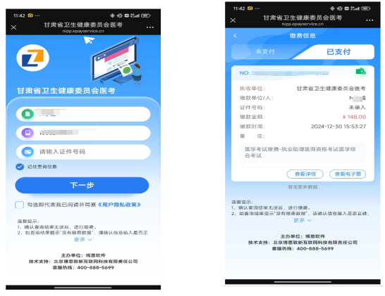 2、考生在規(guī)定時(shí)間內(nèi)完成網(wǎng)上繳費(fèi)視為報(bào)名成功,逾期未繳費(fèi)視為自動(dòng)放棄考試。繳費(fèi)成功后不參加考試者,視為缺考,報(bào)名費(fèi)用不予退還。請(qǐng)各位考生在報(bào)名系統(tǒng)內(nèi)務(wù)必綁定微信,并且關(guān)注“國(guó)家醫(yī)學(xué)考試網(wǎng)”和“甘肅衛(wèi)生健康人才網(wǎng)”微信公眾號(hào),后期可接收考試重要信息通知。考生報(bào)名繳費(fèi)過(guò)程中如有疑問(wèn),請(qǐng)咨詢各考點(diǎn)。