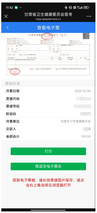 2.關(guān)注“甘肅省衛(wèi)生健康委員會(huì)人才服務(wù)中心”公眾號(hào),選擇發(fā)票打印,進(jìn)行電子票據(jù)查詢打印,如下圖6、圖7所示。