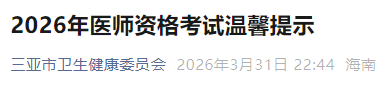 官方提醒:海南三亞2026年醫(yī)師資格考試實(shí)踐技能繳費(fèi)今日開始!