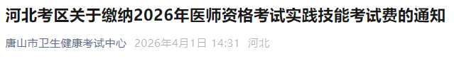 河北唐山2026年醫(yī)師資格考試實(shí)踐技能繳費(fèi)已開始!4月9日截止!