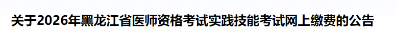 官方速報!黑龍江2026年醫(yī)師資格考試實踐技能繳費4月4日開始!以下為黑龍江省官方提醒,請相關(guān)考生仔細(xì)查看,按時完成技能繳費!