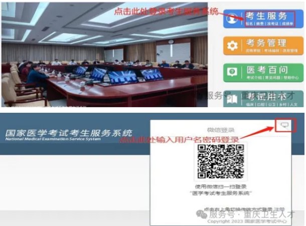(一)登錄國家醫(yī)學(xué)考試網(wǎng)(http://www.nmec.org.cn/),進(jìn)入“考生服務(wù)”,輸入用戶名和密碼或微信掃碼進(jìn)入個(gè)人系統(tǒng)。