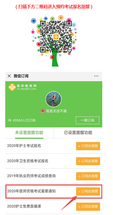 2020年醫(yī)師資格考試報名時間微信訂閱提醒!