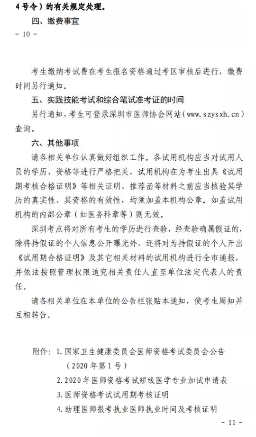 廣東深圳市2020年醫(yī)師資格考試報名及現(xiàn)場審核通知