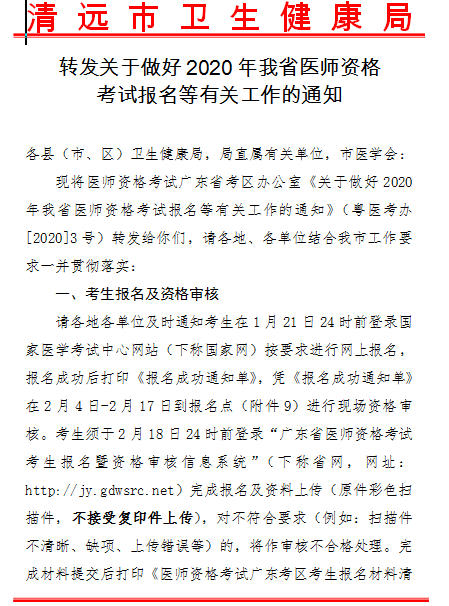 廣東清遠(yuǎn)市2020年醫(yī)師資格考試現(xiàn)場(chǎng)審核等事項(xiàng)通知