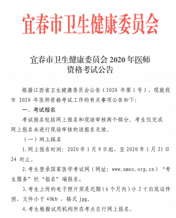 江西宜春市2020年醫(yī)師資格考試報(bào)名現(xiàn)場(chǎng)審核時(shí)間