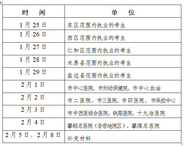 四川攀枝花2021年醫(yī)師資格考試報(bào)名現(xiàn)場審核安排表