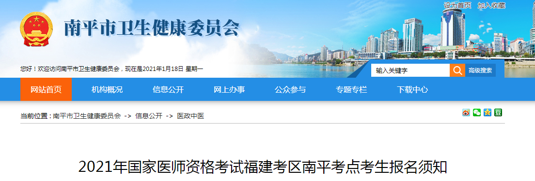 南平考點關(guān)于2021年國家醫(yī)師資格考試報名及現(xiàn)場審核的相關(guān)事項通知