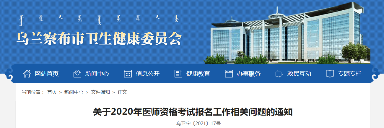 內(nèi)蒙古烏蘭察布考點關(guān)于2020年醫(yī)師資格考試報名工作相關(guān)問題的通知
