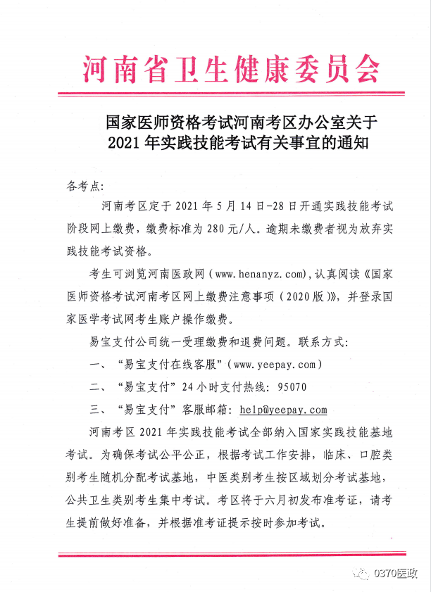 河南考區(qū)2021年醫(yī)師實(shí)踐技能考試?yán)U費(fèi)將于5月28日關(guān)閉!
