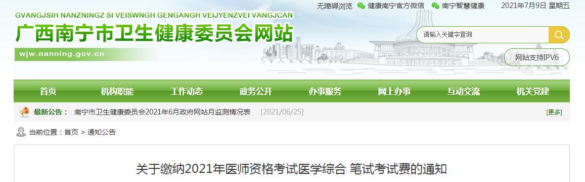 廣西南寧考點(diǎn)關(guān)于繳納2021年醫(yī)師資格考試醫(yī)學(xué)綜合筆試考試費(fèi)的通知