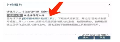 (二)考生在網(wǎng)報系統(tǒng)上傳個人小二寸白底證件照時,應(yīng)按照系統(tǒng)提示內(nèi)容下載并運(yùn)行“醫(yī)考報名照片檢測工具”,網(wǎng)報系統(tǒng)只接受經(jīng)該工具檢測通過且保存后的照片進(jìn)行上傳。