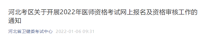 河北考區(qū)關(guān)于開展2022年醫(yī)師資格考試網(wǎng)上報名及資格審核工作的通知