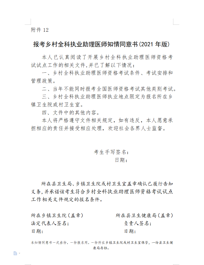 報考鄉(xiāng)村全科執(zhí)業(yè)助理醫(yī)師知情同意書2022