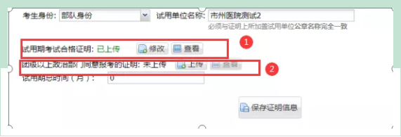 (1)部隊考生從國網(wǎng)直接跳轉(zhuǎn)至省網(wǎng)后,須拍照上傳團級以上有關(guān)學(xué)歷、試用期考核合格表2種證明材料。