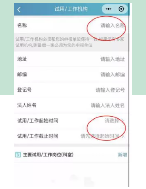 (1)試用/工作機構(gòu)名稱必須填寫準(zhǔn)確