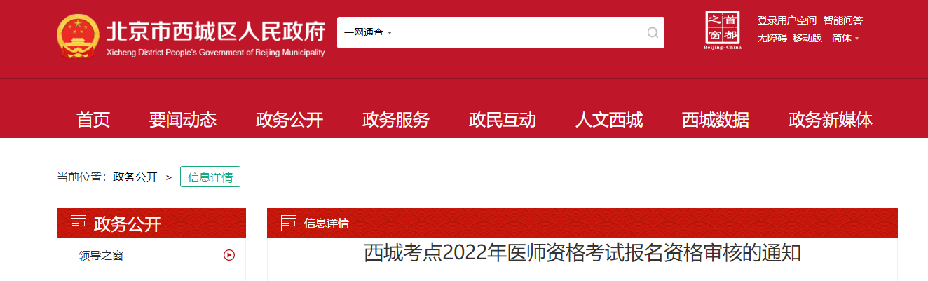 北京考區(qū)西城考點(diǎn)2022年醫(yī)師資格考試報名資格審核的通知