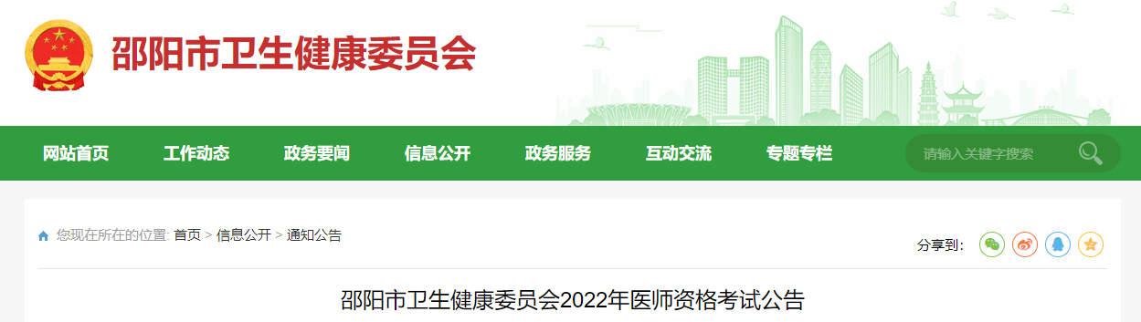 邵陽市衛(wèi)生健康委員會2022年醫(yī)師資格考試公告