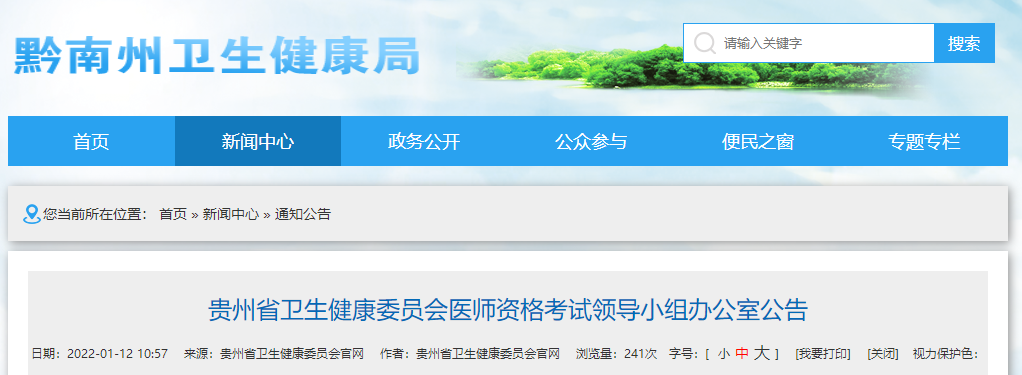 黔南州考點(diǎn)轉(zhuǎn)發(fā)貴州考區(qū)2022醫(yī)師資格考試報(bào)名審核公告