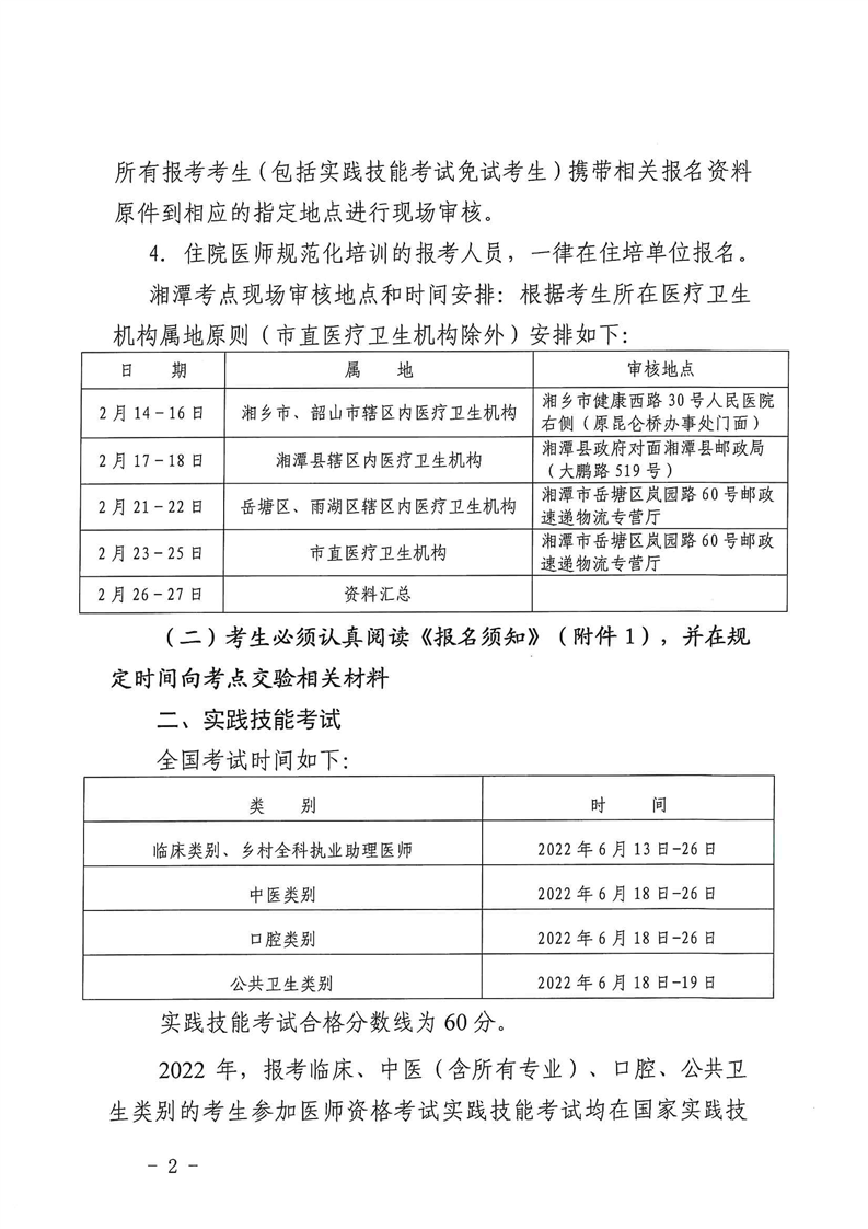 湘潭市關(guān)于2022年國(guó)家醫(yī)師資格考試報(bào)名和現(xiàn)場(chǎng)審核的通知