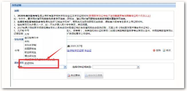 (2)選擇自己的學(xué)歷,然后選擇對(duì)應(yīng)的學(xué)歷真實(shí)性證明材料。