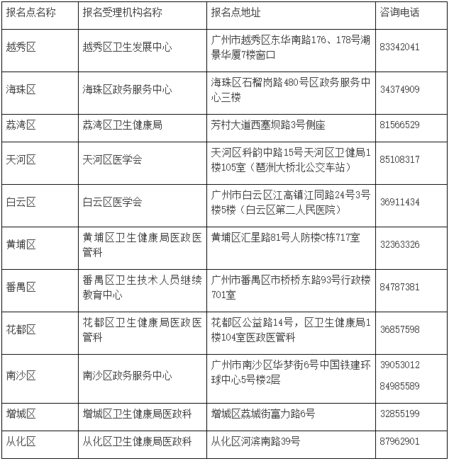 廣州報名點地址、聯(lián)系電話一覽表