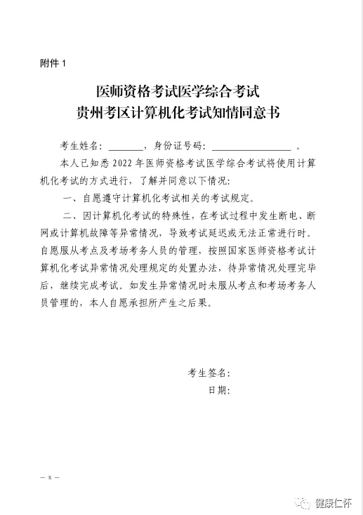 附件:1.《醫(yī)師資格考試醫(yī)學綜合考試貴州考區(qū)計算機化考試知情同意書》