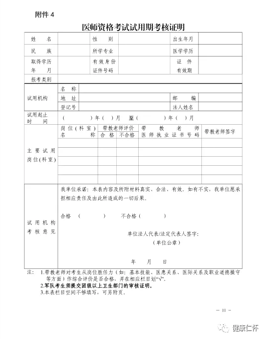 3.在村衛(wèi)生室工作的考生,報考時提供的《醫(yī)師資格考試試用期考核證明》需加蓋村委會印章。